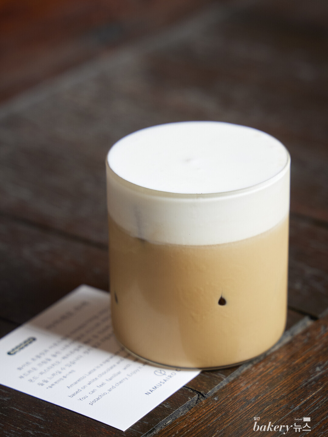 나무사이로에서는 다양한 베리에이션 메뉴 또한 만날 수 있다. 그 중 ‘아 마레또 라떼’는 작년 ‘롯데칠성음료 음료학교’에서 진행한 ‘모두의 시그니처 시즌2’라는 음료 대회에서 우승한 메뉴로 올해 가을, 편의점에 RTD(Re ady To Drink) 제품으로 출시된다. “메뉴 개발 후 잠실 롯데월드몰에서 팝업을 진행했는데요, 최종 6개의 카페 메뉴 중 감사하게도 나무사이로의 아마레또 라떼가 1위로 뽑혀 출시 예정입니다.” 커피 외에도 티, 밀크티, 아이스크림, 감주 등 다양한 메뉴가 준비되어 있으니, 커피를 좋아하지 않는 이들에게도 선택지는 많다.