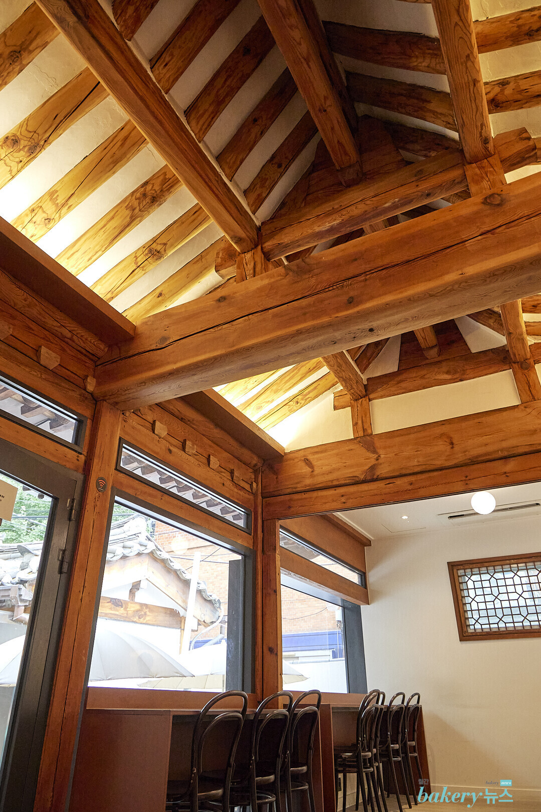 경복궁역 인근에 위치한 매장은 여느 카페와 다르게 색다른 매력 포인 트를 가지고 있다. 바로 1950년대에 지어진 한옥을 그대로 살린 인테 리어인데, 천장의 서까래까지 그대로다. 기존 한옥의 멋을 최대한 살리면서도 깔끔하게 탈바꿈하기 위해 몇 달 동안 보수 공사를 진행했다 고. 외관만 보면 이곳이 한옥이 맞나 싶지만 중정을 지나 안채로 들어 가면 아늑한 다락방이 자리한, 옛 모습 그대로의 한옥을 마주하게 된다. 팍팍한 도심 속에서 만날 수 있는 숨겨진 쉼터 같은 공간으로, 외국인 관광객들의 발걸음 또한 끊이지 않는다. 통창에서는 사계절의 정취와 온도까지 고스란히 느낄 수 있어 커피 한 잔과 함께라면 그 어느 것도 부럽지 않다.