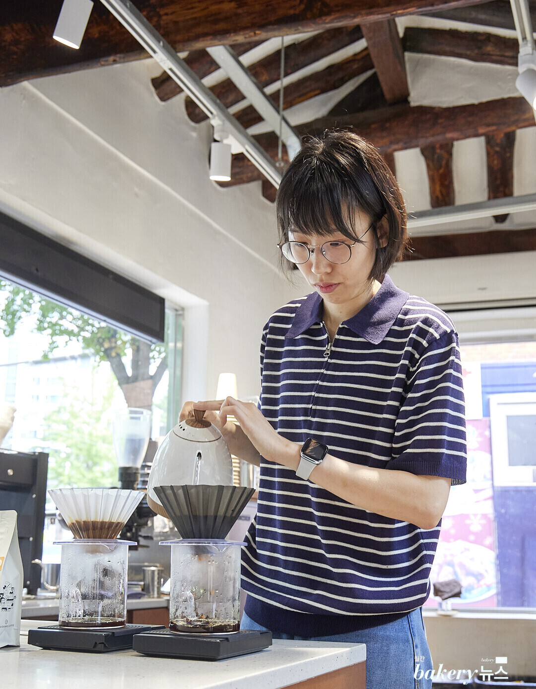“사용하는 생두의 출처도 명확하게 밝히며, 공정한 노동력으로 만들어진 커피를 소개하고 싶었다”는 배준선 대표. ‘그린빈뉴스’라는 작은 모임을 만들어 한국 생두 시장에 대해 조사함과 동시에 생두 공부 또한 게을리하지 않았다. 또 단순히 생두 수입만 하는 것이 아니라 지속적 으로 커피 농장을 방문해 커피 농부의 이야기를 직접 듣는다. “우리가 하는 일이 무엇인지, 함께 일하는 이들이 누구인지 알고자 틈틈이 산지에 방문합니다. 한평생 농사를 지어온 농부들의 삶 앞에서, 거대한 커피 산업 안에서, 저희는 매우 작은 존재더라고요. 이들에게 부끄럽지 않은, 기본에 충실한 커피를 다루고자 합니다.” 현재 사용하는 모든 원두는 판교에 위치한 로스터리에서 로스팅하며 전국 각지 270여 곳이 넘는 카페에 납품도 진행하고 있다. 5명으로 이뤄진 생산팀에서 주 4회 정도 로스팅을 진행하며, 매일 같이 커핑을 통해 원두의 상태를 파악하는 덕에 언제나 최상의 품질을 유지하고 있다.