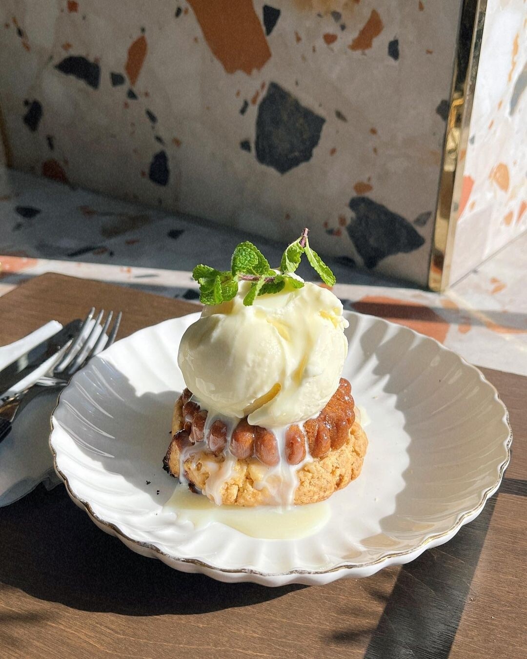 밀도 높은 꾸덕함이 매력인 약과. 이번엔 ‘연트럴다방’의 시그니처 메뉴인 스콘과 만났다. 스콘 위에 달콤한 약과 그리고 아이스크림까지 더해지니 나른한 오후, 당충전하기에 제격이다. 열량은 높지만 덩달아 기분까지 상승! 아이스크림, 약과, 스콘까지 한입에 푹 떠 넣으면 달콤함부터 담백함까지 모두 느낄 수 있다.