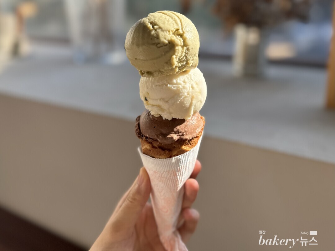 젤라또와 샤베트의 중간 식감으로 약간의 결정이 아삭한 식감을 부여한다. 들 어간 식재료도 중간중간 씹히며 씹는 맛이 좋은 아이스크림이다. 주로 홍차나 제철 과일 등을 활용해 다른 곳에서는 보기 힘든 메뉴를 판매한다. 그중 추천하는 맛은 ‘소금 바닐라 올리브오일’이다. 첫 입에는 달달한 바닐라 맛이, 중간에는 향긋한 올리브 향미가 코끝을 스친다. 마지막엔 적당한 짠맛까지 있어 3가지 맛이 조화롭게 도드라진다. 아이보리 컬러의 모던한 인테리어만큼 세련된 맛이다. 메뉴는 매일 조금씩 바뀌어 인스타그램 스토리로 ‘today’s flavor’를 공유하니 참고하길 바란다.