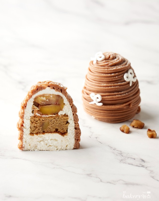 제품을 냉장실에 보관하며 판매할 경우 너무 단단하게 굳을 수 있기 때문에, 녹인 버터를 넣어 이를 보완했습니다. 또 밤 크림에 진한 풍미의 럼을 넣고 하 루 정도 숙성하면, 더욱 깊은 몽블랑의 맛을 표현할 수 있습니다.