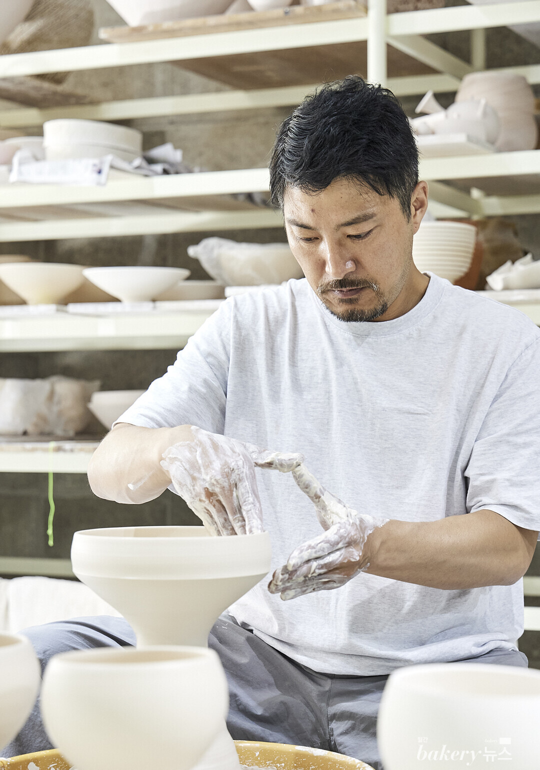 스스로를 손재주가 없어 아침 일찍 일어나 저녁 늦게까지 작업하던 노력형 인간이라고 칭하는 ‘문도방(Moondobang)’의 문병식 작가. 고등학교 시절, 영화 ‘사랑과 영혼’을 보고 도자기를 시작한 그는 26살에 본인의 도자기 브랜드, 문도방을 시작하며 내로라하는 국내 도자기 대회를 휩쓸었다. 국내외 전시 또한 수십번에 달하는, 오랜 경력의 업계 베테랑이지만 지금도 여전히 평일에는 여주에 위치한 작업실에서 하루 종일 직접 물레를 찬다.