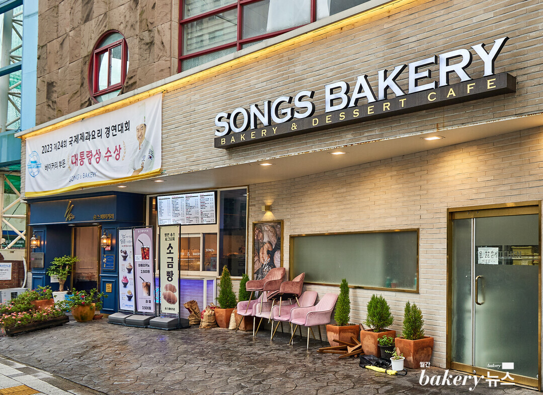 지난 2020년 부산 금정구에 등장한 ‘송스베이커리’는 32년차 경력의 송용규 셰프가 운영하는 빵집이다. 남청색 외관에 골드 컬러의 포인트가 조화를 이루는 송스베이커리 외관은 시선을 끌기 충분하다. 내관 역시 골드 컬러는 그대로 가져가되 밝은 조명과 화이트 톤의 인테리어로 깔끔함을 돋보이게 해 빵과 함께 티 타임을 즐기고 싶은 욕구를 자극한다.