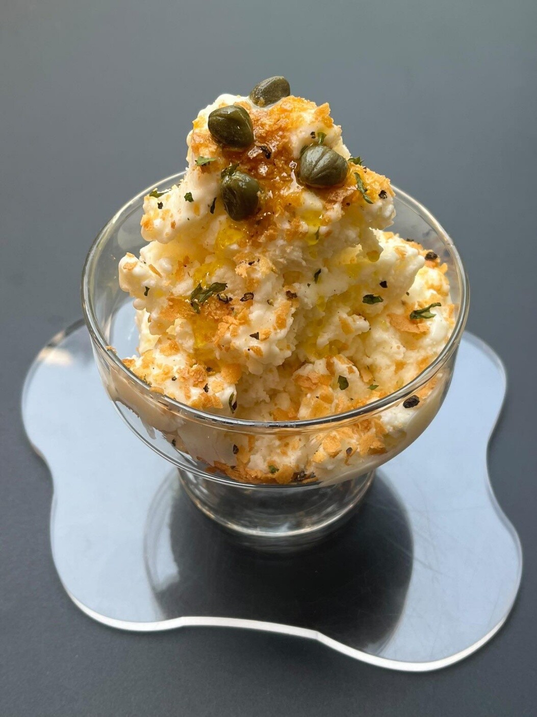 다양한 식재료를 활용해 젤라또를 만드는 ‘멜티드’의 ‘버터감자와 치즈케이크 젤라또’. 삶은 햇감자를 으깨어 버터와 믹스한 젤라또에 직접 구운 치즈 케이크 무스를 뿌려 만드는 세이버리 젤라또다. 무겁고 기름진 감자의 맛을 올리브 오일에 버무린 케이퍼로 잡고 바삭한 푀유틴과 후추로 마무리했다. 올여름은 세이버리의 매력을 그대로 담은 젤라또로 이겨내 보자.