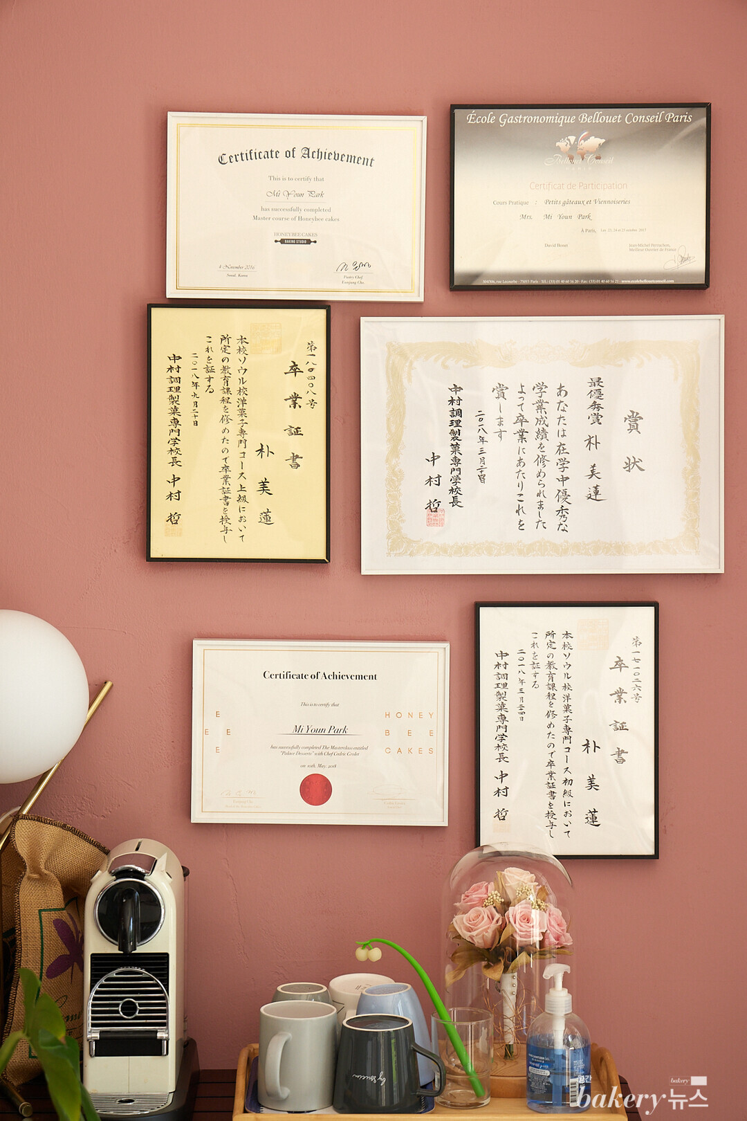 ‘교육자에게 가장 중요한 덕목이란 무엇인가’라는 질문에 무수히 많은 답변이 붙겠지만, 교육자라면 으레 ‘역지사지’의 자세를 갖춰야 한다는 사실에는 이견이 없을 것이다. 그리고 여기 지난 9년 동안 학생의 입장에서 정보를 잘 전달할 수 있도록 끊임없이 고민해 온, 박미연 오너 셰프의 ‘미엘케이크’가 있다. 그는 교육자 이전 홈베이커 시절, 제과를 배우기 위해 베이킹 스튜디오 ‘허니비 케이크(현 허니비 서울)’의 마스터 클래스를 모두 수강하고 ‘해피해피케이크’에서 수업을 들으며, ‘나카무라 아카데미’의 제과 초급 과정 을 수석 졸업한 후 상급 과정을 수료했다.