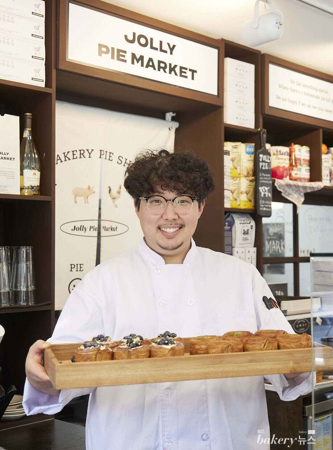 매일 새벽 4~5시쯤 출근하는 이호창 셰프는 바로 옆 망원시장에서 대부분의 식재료를 구매한다. 달걀이나 과일 모두 가장 신선한 것들로만 파이를 굽기에 높은 퀄리티는 당연하다. 그리고 이렇게 완성되는 파이는 단순하면 서도 직관적인 맛을 낸다. 바삭한 페이스트리 속 인서트는 원물의 특징을 잘 살려 한 입 먹자마자 무슨 맛인지 파악함과 동시에 ‘아, 맛있다!’라는 말이 튀어나온다. 대중성을 위해 복잡하지 않은 단순한 맛을 추구했 다는 이 셰프는 고객의 피드백 또한 적극 수용한다. “가오픈 당시 알게 된 사실인데, 부드럽게 흐르는 아파레유를 좋아하는 손님이더 많더라고요. 원래는 조금 더 단단한 식감이었지만 레시피를 바꿨죠. 이처럼 손님이 원하는 맛이나 식감이 아니라면 과감하게 변화를 주곤 합니다.” 메뉴 개발 또한 꾸준히 이뤄져 한 달에 적어도 4가지의 신메뉴가 나오는 중인데 덕분에 한 번 방문한 이들도 그 다음 주에 새로운 메뉴를 맛볼 수 있다.