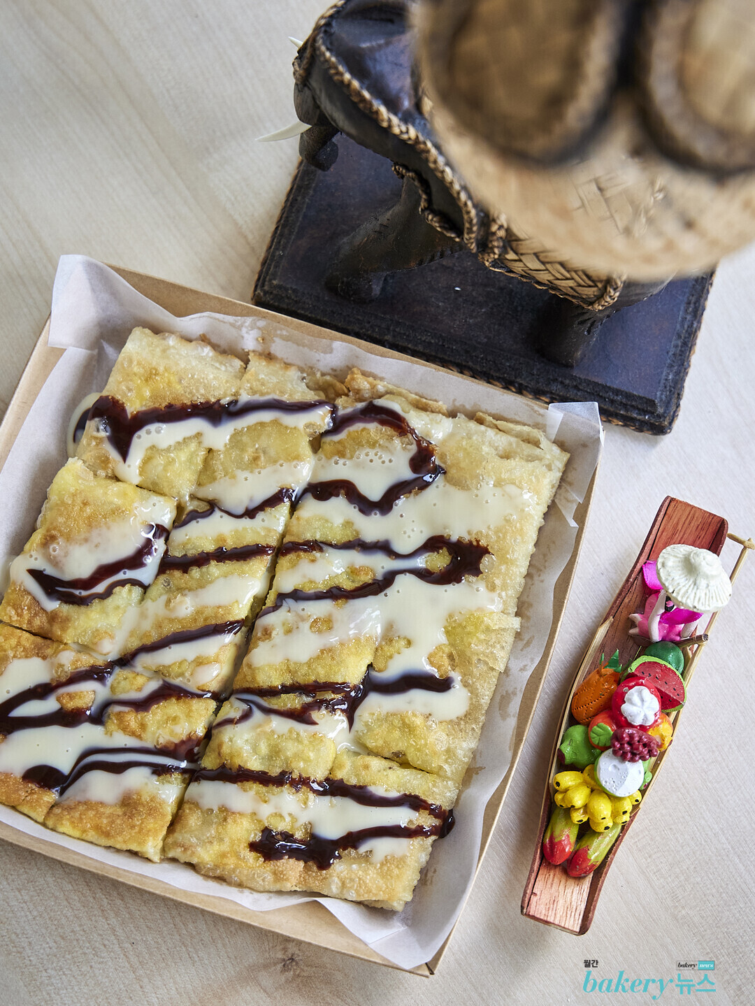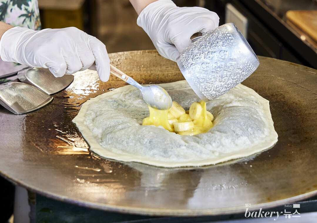 로띠 위에 연유와 초콜릿 시럽만 뿌려 마무리한 메뉴로 태국인들의 요청으로 만들어졌다.