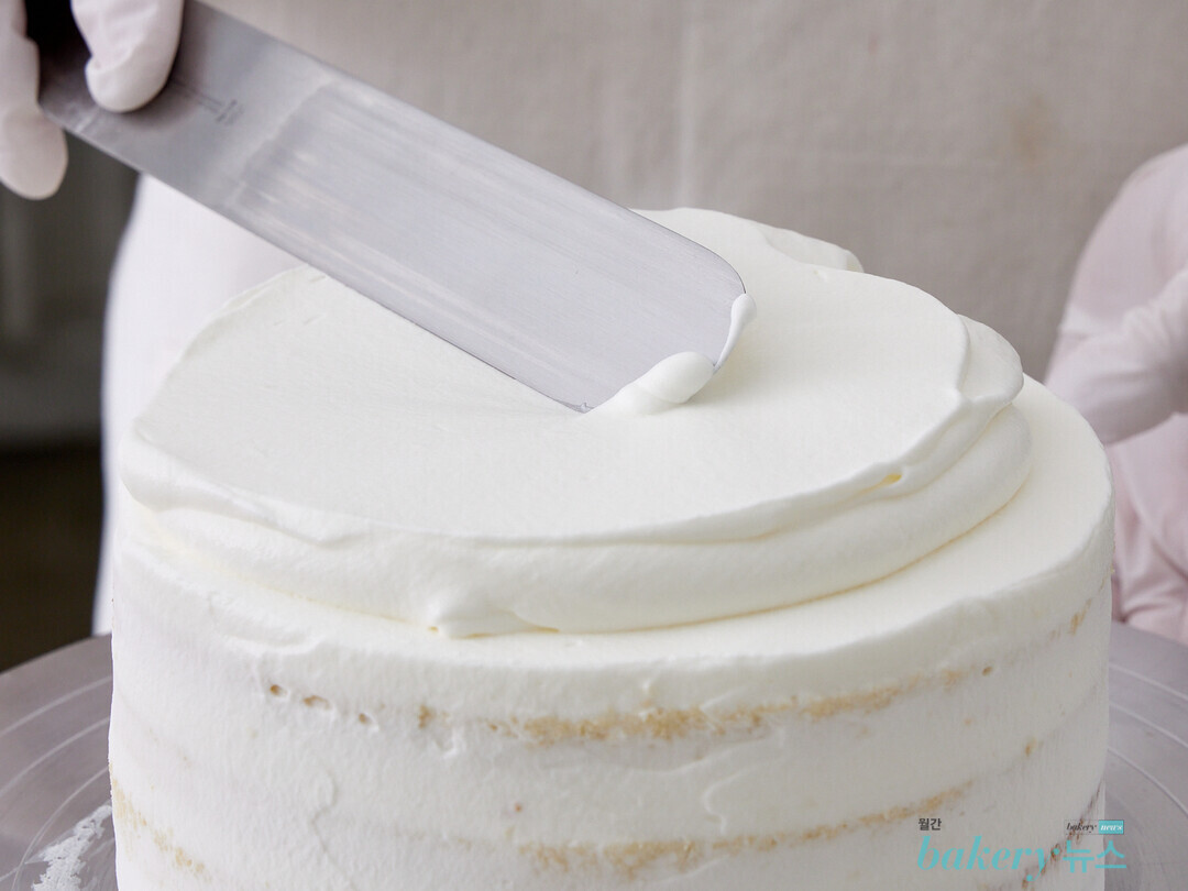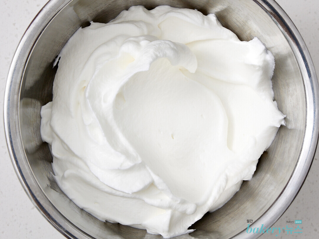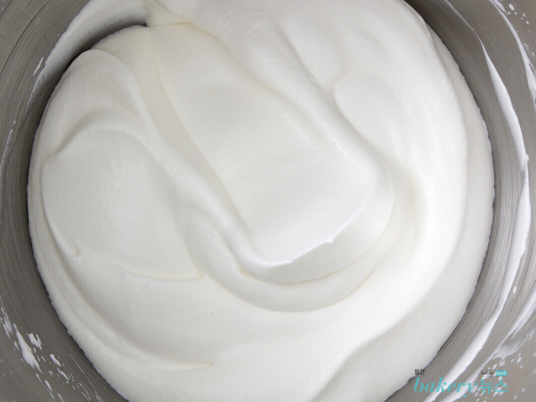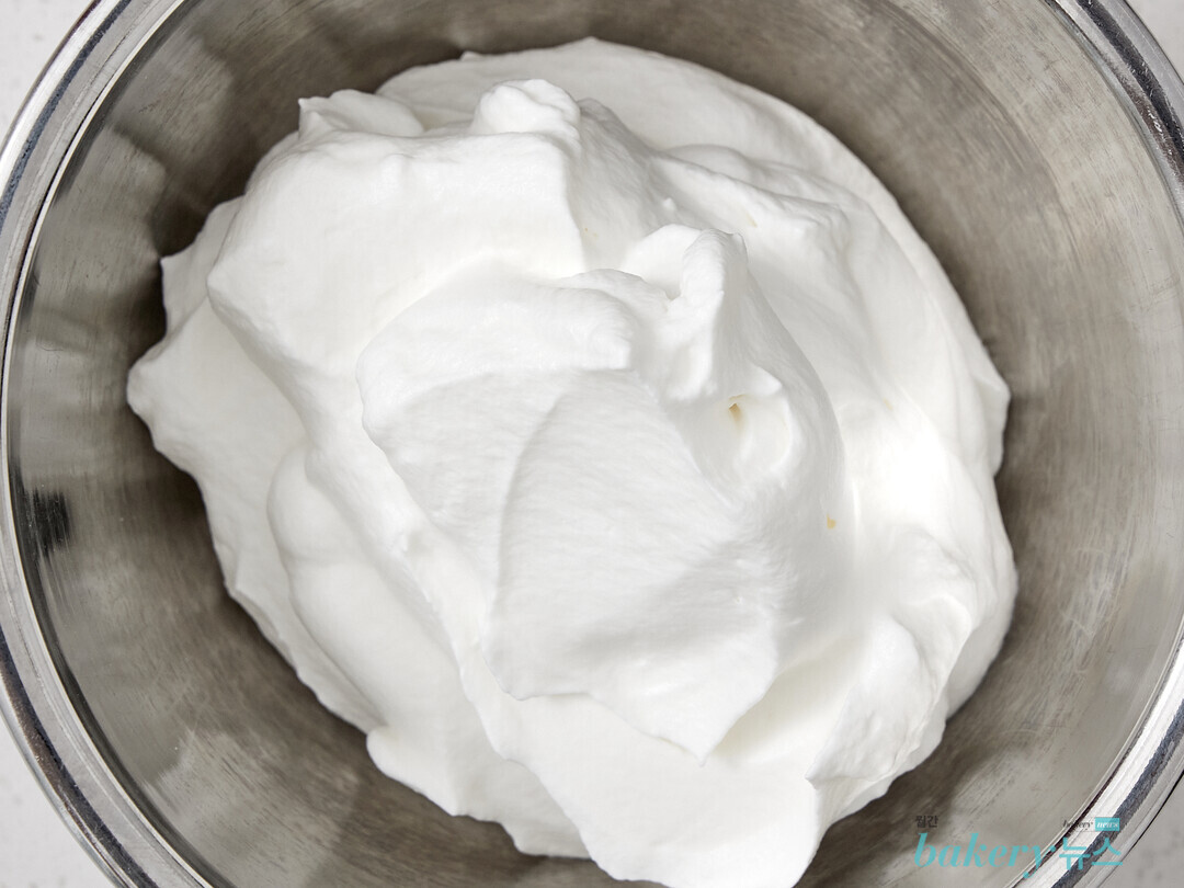 90% 정도의 휘핑 상태다. 탄력을 지니고 있되 흐르지 않아야 한다.