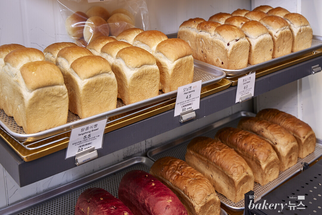 2층 건물을 단독으로 사용하는 상상빵집의 1층은 제품 판매와 생산을, 2층은 오로지 고객들의 휴식을 위한 공간으로 날씨가 좋은 날에는 루프탑을 이용하려는 손님들이 가득하다. 또 좌식 테이블이 설치되어 동네 주민들의 사랑방 역할을 하고 있다. 한편 가게 규모에 비해 생산 공장의 면적이 넓다. “고객들에게 항상 따뜻하고 신선한 빵을 제공할 수 있도록 저장 공간이 충분한 워크인(Walk-In) 냉동고를 설치하여 미리 작업한 생지를 보관했다가 조금씩 꺼내 자주 구우며, 당일 생산· 판매 원칙을 고수합니다. 또 한 가지 반죽에 다양한 충전물과 토핑을 활용한 베리에이션 메뉴를 중점적으로 선보이죠. 한정된 시간과 적은 인원으로 효율적인 시스템을 유지하기 위해 공간 분배에 신경을 많이 썼습니다.”