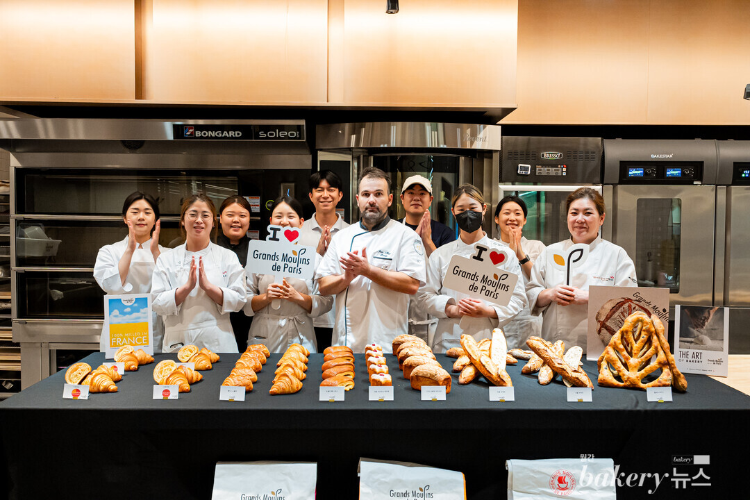 ㈜베이크플러스가 프랑스 정통 밀가루 브랜드 ‘그랑 물랑 드 파리 (Grands Moulins de Paris)’의 ‘그뤼오 후즈 T45’와 ‘트레디션 T65’를 활용한 핸즈온 트레이닝 행사를 진행했다. 이날 세미나는 장 마리 라니오(Jean Marie Lanio) 셰프가 진행했다. 장 마리 셰프는 두 밀가루 제품의 특성과 용도를 이론적으로 설명하고, 이를 바탕으로 8가지 클래식 프랑스 빵을 선보였다. 그랑 물랑 드 파리가 100여 년이 넘는 시간 동안 쌓아 온 차별화된 제분 기술의 헤리티지, 그뤼오 후즈 T45와 트레디션 T65의 최적의 제품 활용법을 만나볼 수 있었던 핸즈온 트레이닝 현장 분위기를 소개한다.