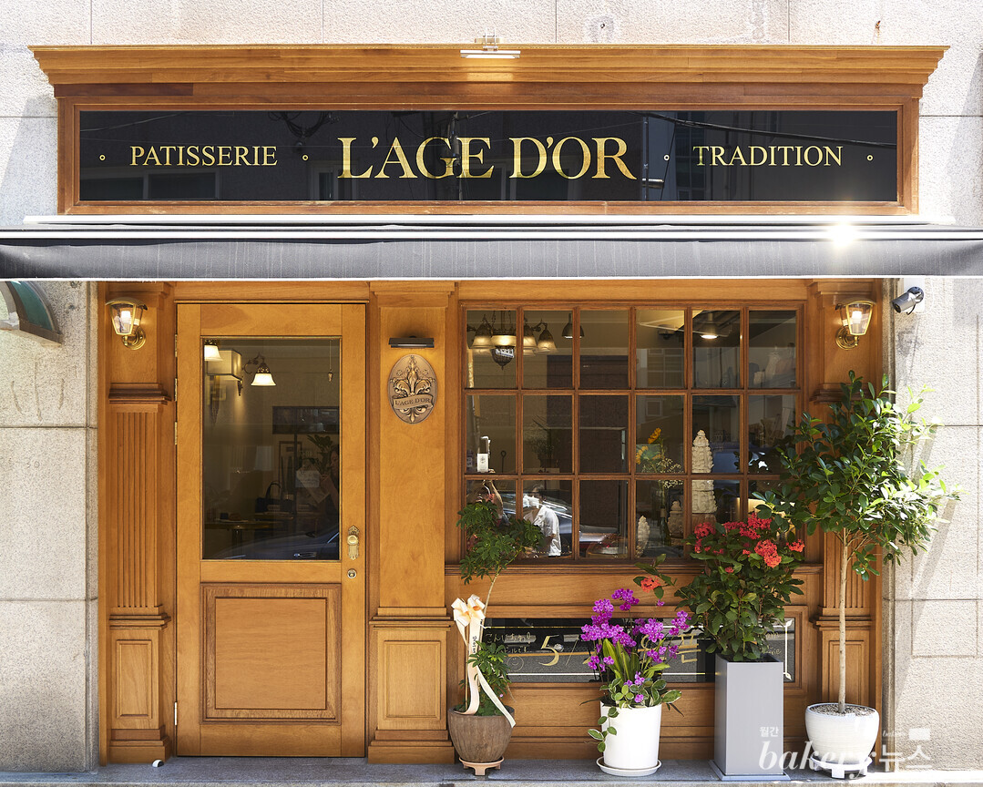 일본 도쿄의 ‘오봉뷰탕(Au Bon Vieux Temps)’, 프랑스 알자스의 ‘메종 네 겔(Maison Naegel)’에서 경력을 쌓은 정종우 셰프가 그의 아내 오오타 미즈호와 함께 올해 5월 프랑스 향토 과자 전문점 ‘라쥬도르(L’AGE D’OR)’ 를 오픈했다. 상호인 라쥬도르는 ‘황금시대’라는 뜻의 프랑스어로, 황금시대를 영유하고 오늘날까지 이어져 온 고전 과자를 오마주한다는 의미가 담겨 있다. 이런 인상은 매장의 무드와도 이어지는데, 내부와 외부 인테리어는 우드톤으로 통일하고, 앤티크한 느낌의 조명과 바닥 타일, 소품들로 채워 황금시대를 연상케 하는 따뜻하면서도 고풍스러운 분위기를 담았다.