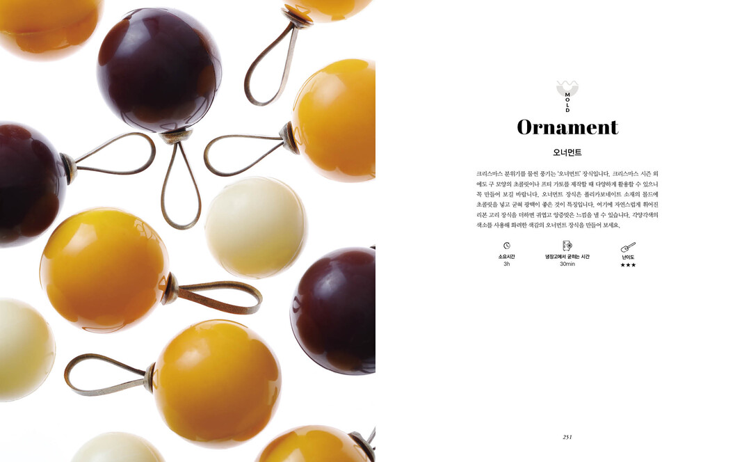 화려한 디저트에 초콜릿 장식은 빼놓을 수 없는 중요한 포인트다. ‘르 쇼콜 라’는 일명 ‘셰프들의 선생님’이라 불리는 성명주 저자가 초콜릿 장식에 관심 있는 모든 이들을 위해 만든 책이다. 초콜릿은 어떻게 만들어지며, 커버 추어 초콜릿이란 무엇인지, 템퍼링은 왜 필요한지 등 초콜릿을 다루기 위해 알아야 할 필수지식을 상세히 기재했다. 쉽게 만들어 디저트에 바로 적용할수 있는 실용 장식부터 난이도 높은 공예 장식까지 골고루 담아 말 그대로 초콜릿 장식에 대한 모든 것을 총망라했다. 초콜릿에 대한 모든 궁금증을 해소하는 초콜릿 장식의 기본서로 활용 가능하다.