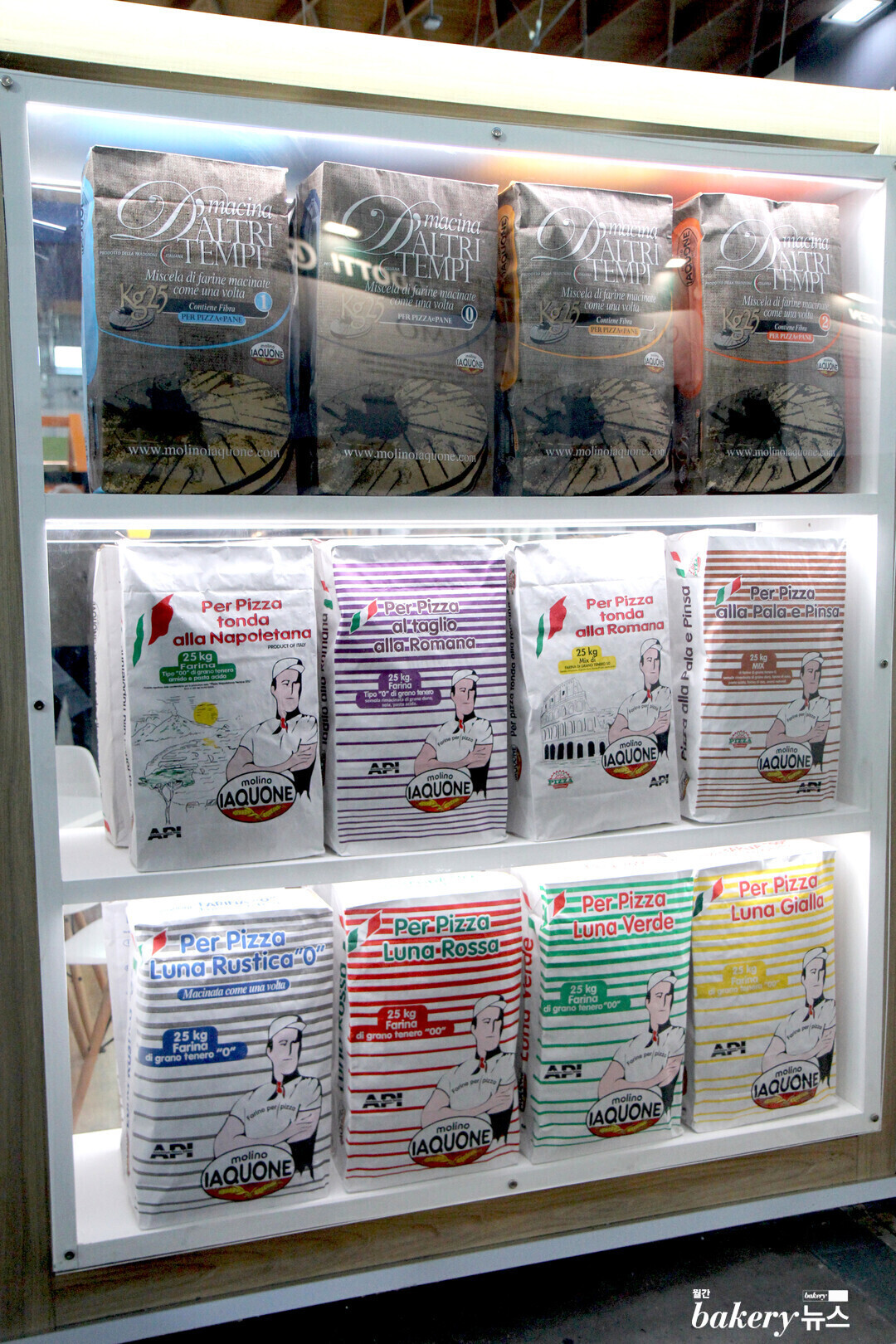 이탈리아에서 열린 시젭에서는 피자의 나라답게 다양한 피자용 밀가루를 찾아볼 수 있었다. “이탈리아에서는 피자용 밀가루는 나폴리식 피자, 로마식 피자 등에 따라 밀가루를 달리 사용해 품목이 세분화 되어 있다”라고 밀가루 전문 기업 ‘API’의 영업 담당자가 설명했다. 일반 제과 제빵용 밀가루 역시 다른 나라에 비해 세밀히 나눠진 편이다. 이탈리아에서는 밀가루의 입자가 고울수록 숫자는 낮아지는데 00부터 2까지 표기한다. 또 ‘W’로 강도를 표기하는데 글루텐 함량 8~9%는 W 90~180, 글루텐 함량 9~12%는 W 200~300, 글루텐 함량 12% 이상은 W 300 이상으로 표기한다.