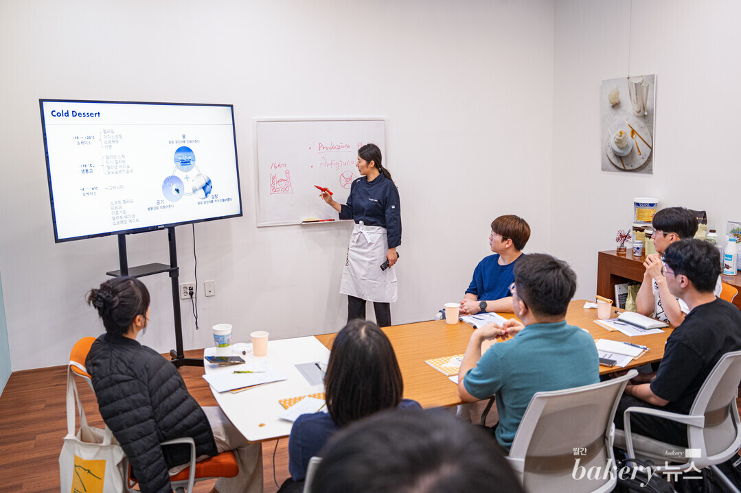 이후 젤라또를 포함한 폭넓은 콜드 디저트의 세계를 탐구하는 시간이 마련됐다. 콜드 디저트의 종류와 보관 온도, 콜드 디저트의 시초인 그라니따의 발전부터 미국의 아이 스크림 문화가 성행하기까지의 흐름, 한국 내 콜드 디저트에 대한 상권〮연령대별 인식을 설명했다. 이에 대해 한 참가자는 “한국 외식 문화에 적합한 제품을 개발하고 발전시킬 수 있는 활용법을 배울 수 있었다”라고 전했다.