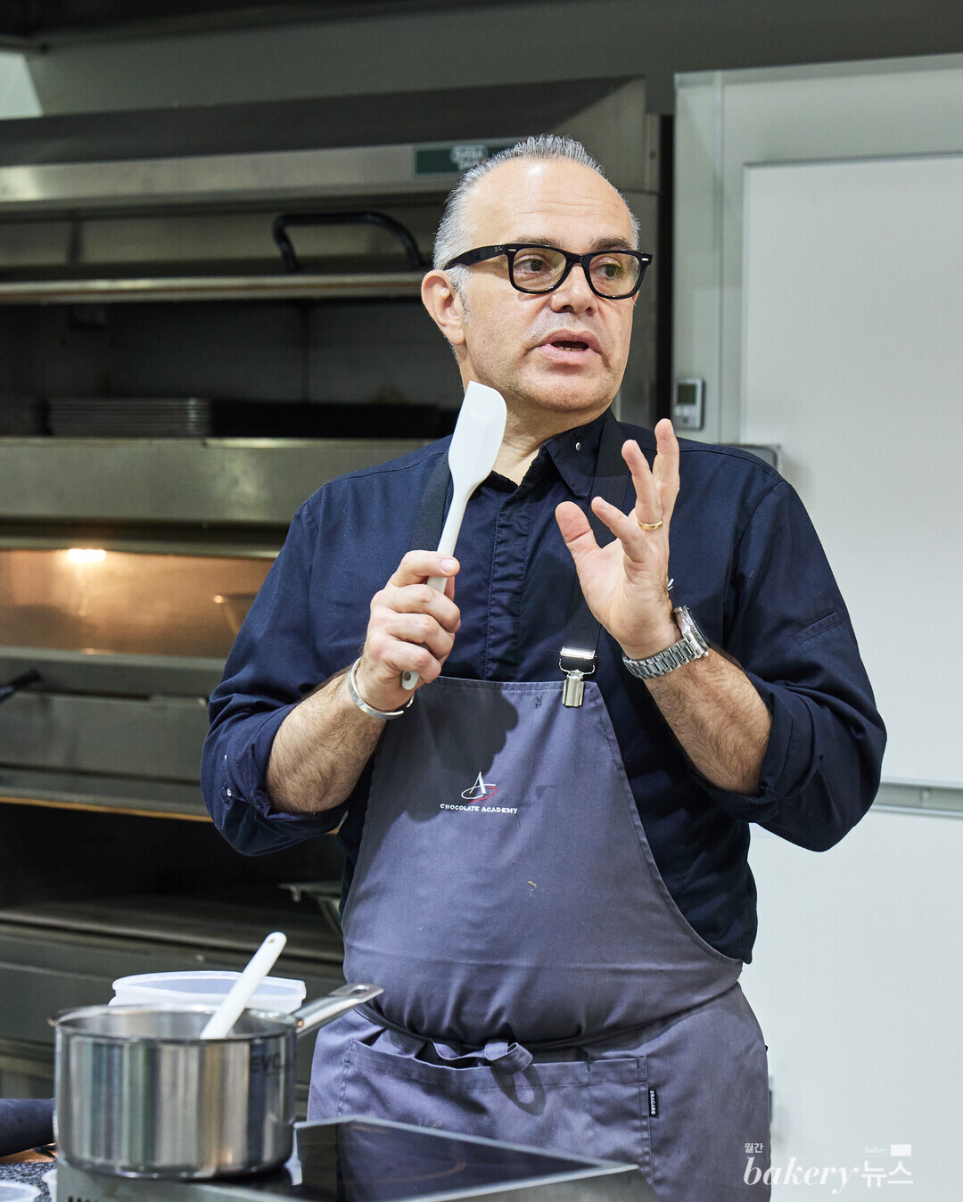 모렐 셰프는 ‘레제르 1%’, ‘가나 오리진 40%’, ‘카카오바리 빠떼 드 노아제트 100%’ 등 자신이 사용한 카카오바리 제품들에 대해 설명하고 디저트에 어떻게 접목했는지 전했다. 이어 본격적인 시연을 통해 수년간 쌓은 기술과 노하우를 아낌없이 전달했다. ‘두 반죽의 온도를 왜 똑같이 맞춰야 하는지’, ‘흰자의 거품을 왜 많이 내면 안 되는지’ 등 디저트의 공정 과정을 구체적인 이론으로 꼼꼼히 설명하며 참석자들의 이해를 도왔다. 더불어 즉각적인 질의응답을 통해 다양한 기술력이 오가며 클래스는 더욱 풍성해졌다.