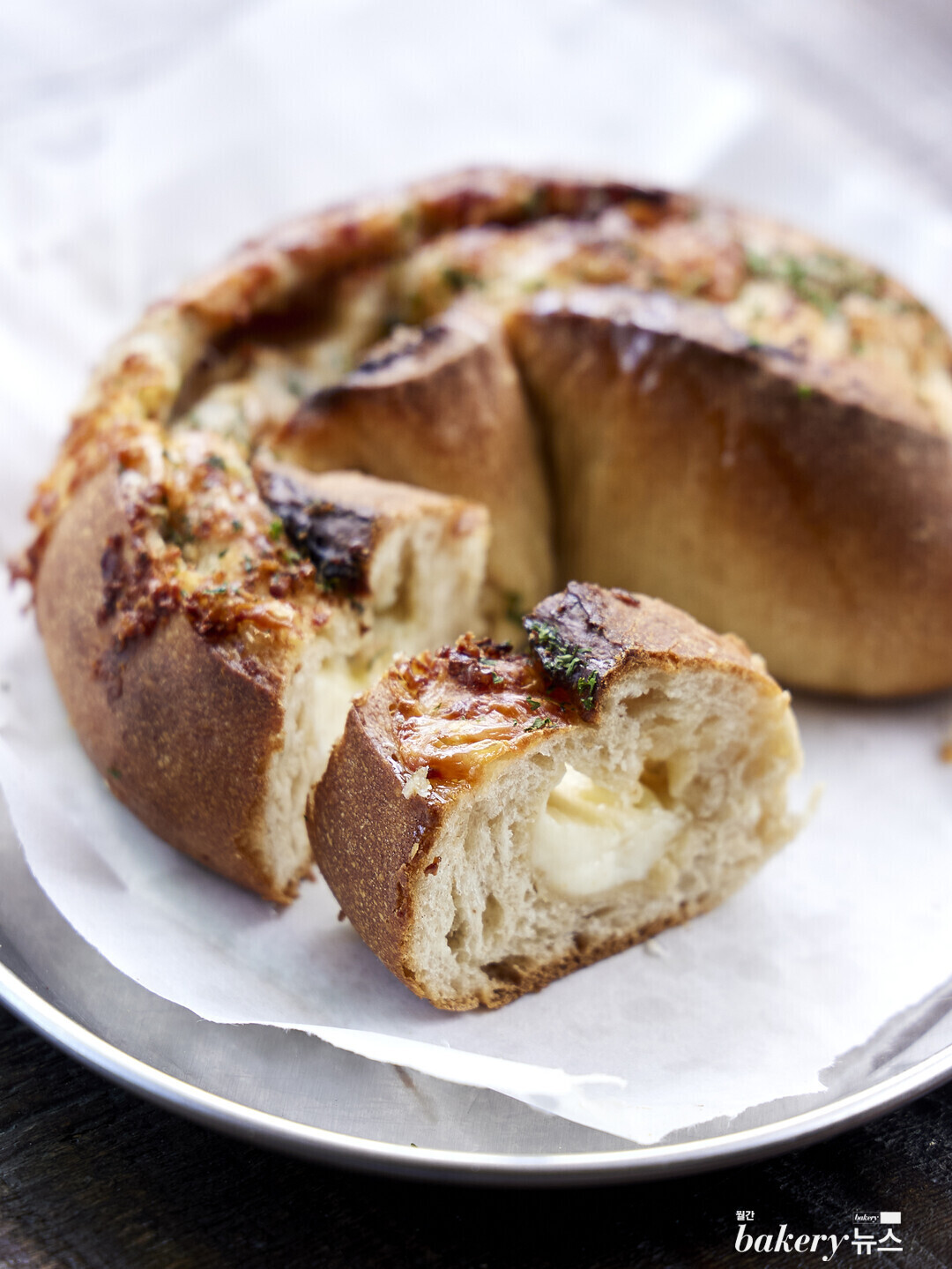 바게트 반죽 속에 크림치즈로 한 번, 고르곤졸라 치즈로 한 번 더 맛을 냈다. 짭쪼름한 치즈와 부드러운 크림치즈가 담백한 바게트와 잘 어울린다.
