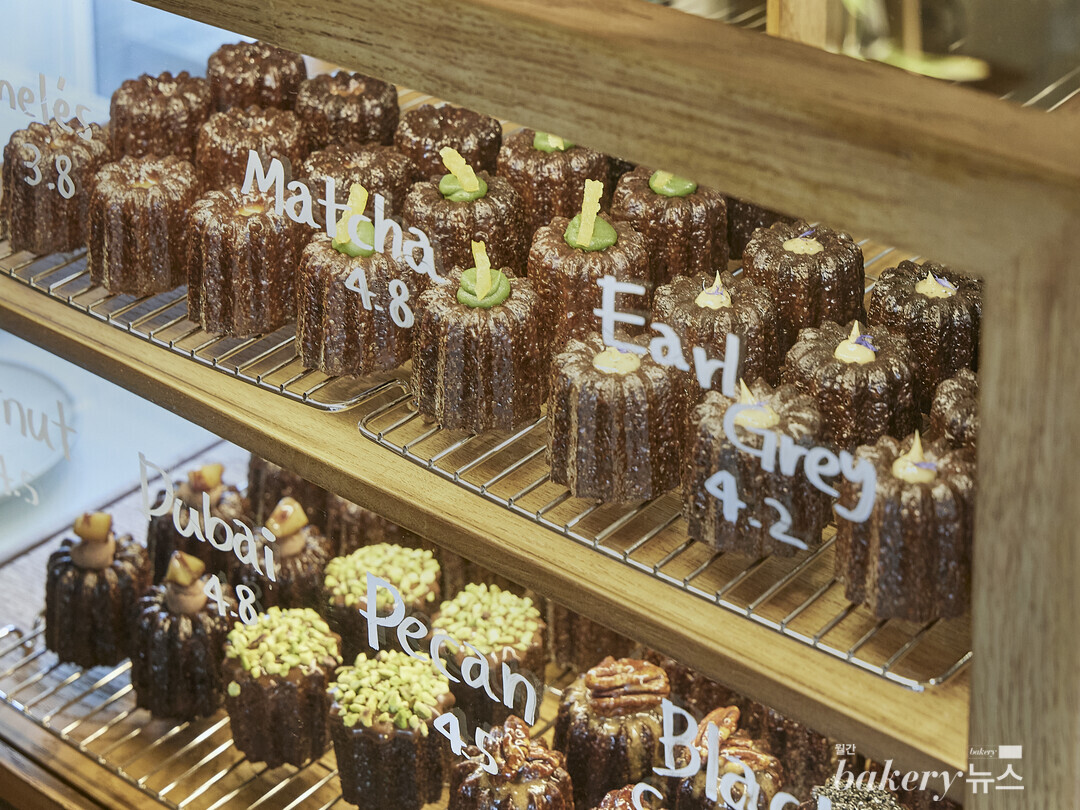 프랑스어로 ‘긴 여정’이라는 뜻을 가진 ‘르슈망’. 두 명의 파티시에가 함께 앞으로 걸어갈 길이라는 뜻을 담아낸 르슈망은 올해 9월, 길지호, 임석규 셰프가 함께 의기투합해 오픈한 디저트 숍이다. 국내에서는 보기 드물게 까눌레를 메인으로 선보이며, 까눌레 모양의 무스케이크나 까눌레를 활용한 음료도 만날 수 있다. “한국에서는 마들렌과 피낭시에 같은 구움과자는 잘 알려져 있지만, 아직 까눌레는 그렇지 않다는 느낌을 받았습니다. 까눌레를 더 많은 이들에게 알리고 싶어 시작했어요.” 프랑스에서 유학할 당시, 동네 빵집에서 우연히 맛본 까눌레의 달콤한 맛을 잊기 어려웠다는 임 셰프와 예전부터 까눌레를 특히 좋아했다는 길 셰프가 만난 만큼, 르슈망은 까눌레에 진심이다. 매장 입구 바닥에 타일부터 까눌레 모양의 소품도 매장 곳곳에 숨어 있으니 이를 찾는 재미 또한 있다.