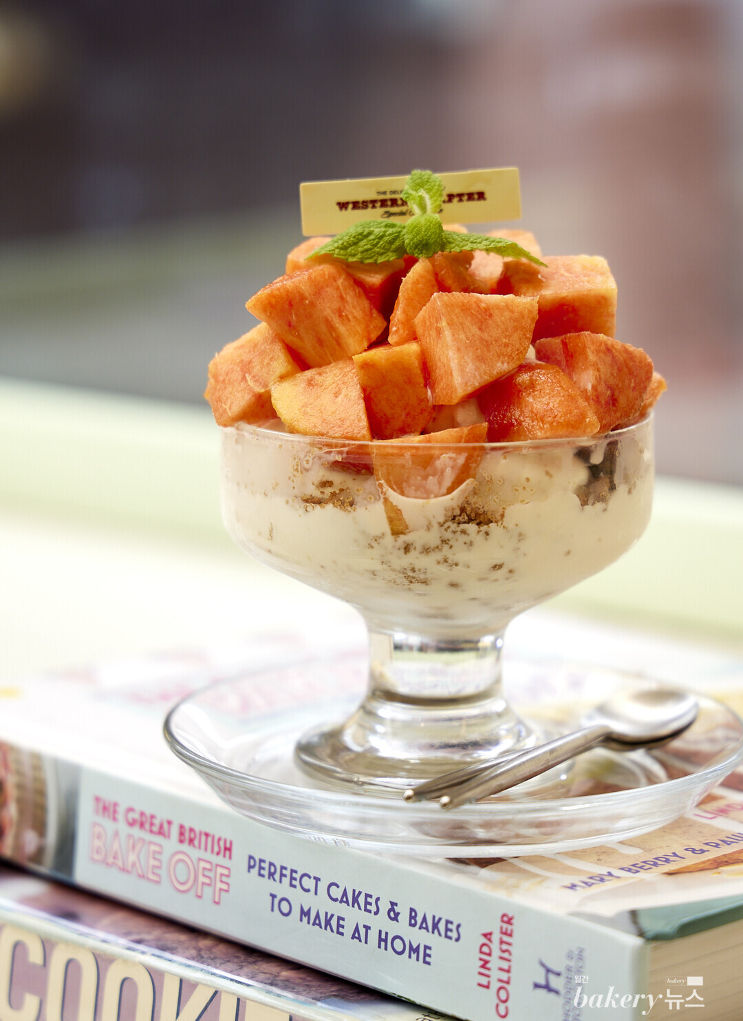 웨스턴챕터는 오픈 초기 베이글 모양 치즈케이크인 ‘치글’로 인기를 끌고 크리스마스 시즌에는 트리 모양의 치즈케이크로 큰 사랑을 받았으나, 현재는 심플한 디자인의 크럼블 치즈케이크를 메인으로 하고 있다. “특이하고 독특한 모양의 치즈케이크를 판매하는 곳으로 굳혀지는 듯한 느낌을 받았어요. 맛있는 미국식 치즈케이크를 사람들에게 알리고자 했던 본질이 흐려지는 것 같아 심플하게 디자인을 변경했습니다.” 10~20년 이상 사랑받는 브랜드가 되고자 과감하게 기본으로 돌아간 웨스턴챕터, 최근에는 제철 과일을 활용한 치즈케이크와 디저트를 적극적으로 선보이고 있다. 여름에는 복숭아를 활용한 빙수와 파르페를 맛볼 수 있으며, 가을에는 무화과로 변경하여 출시한다. 치즈케이크 하나를 선보이더라도 제대로, 기본에 충실하게 만들어 내고자 하는 웨스턴 챕터. 올 가을엔 멀리 떠나지 말고 서울에서 미국 정통의 치즈케이크를 즐겨보자.