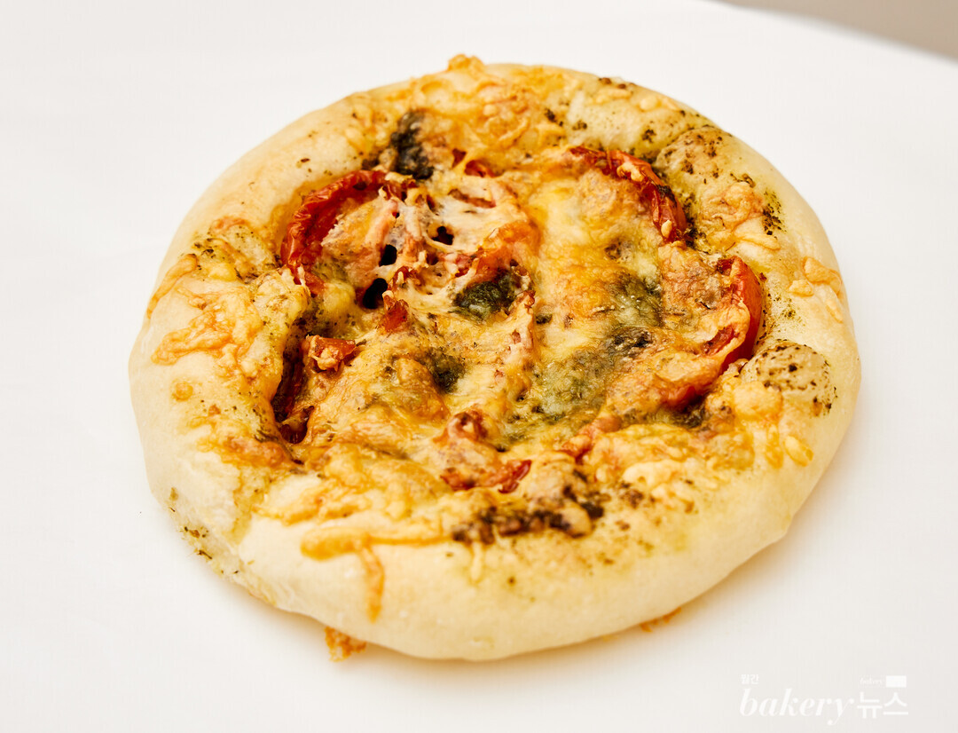 치아바타 위에 새콤달콤한 마리네이드 토마토와 향긋한 바질 페스토를 가득 올렸다. 화룡점정으로 그 위에 에멘탈, 체다, 모짜렐라, 고다를 섞은 치즈 블렌딩을 뿌려 구웠다. 촉촉하고 고소한 빵과 각기 다른 매력을 뽐내는 토핑이 맛있는 조화를 만든다.