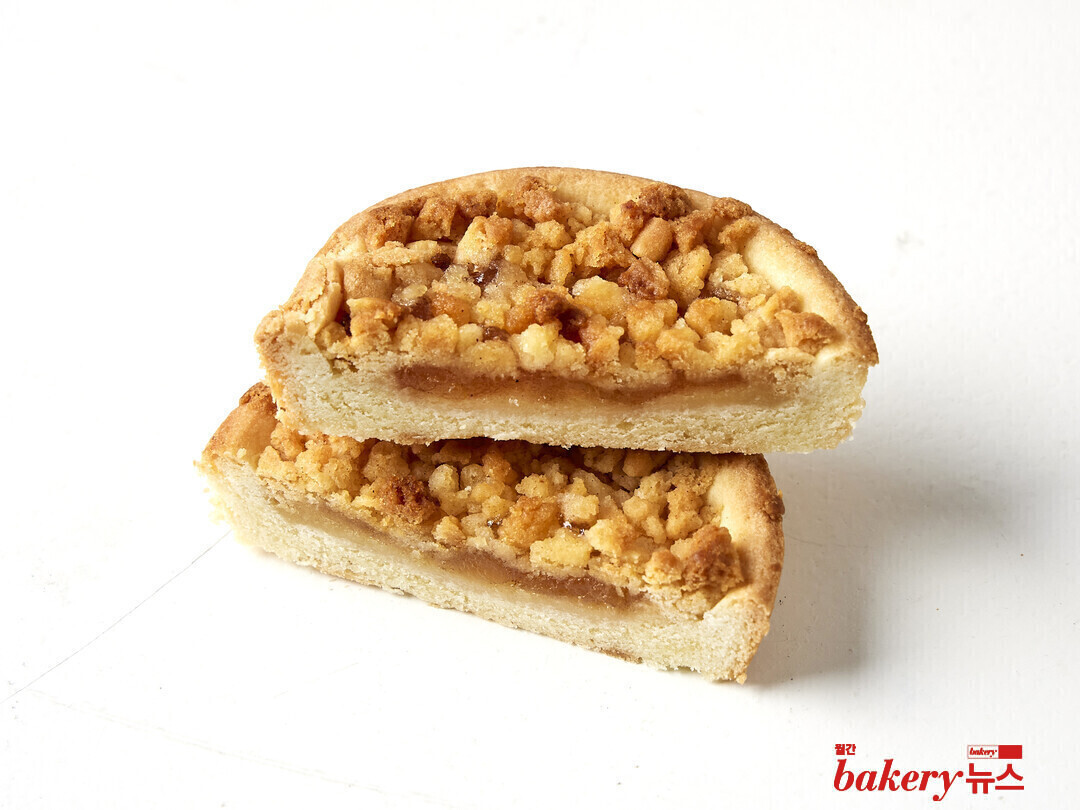 크기에 비해 묵직한 무게를 가졌다. 고소한 소보로와 달콤한 애플잼, 향긋한 시나몬의 구성으로 보편적인 맛의 애플 크럼블 파이다. 식감은 바삭함과 찐득함이 공존하며 중간중간 사과 다이스가 씹혀 아삭하기도 하다.