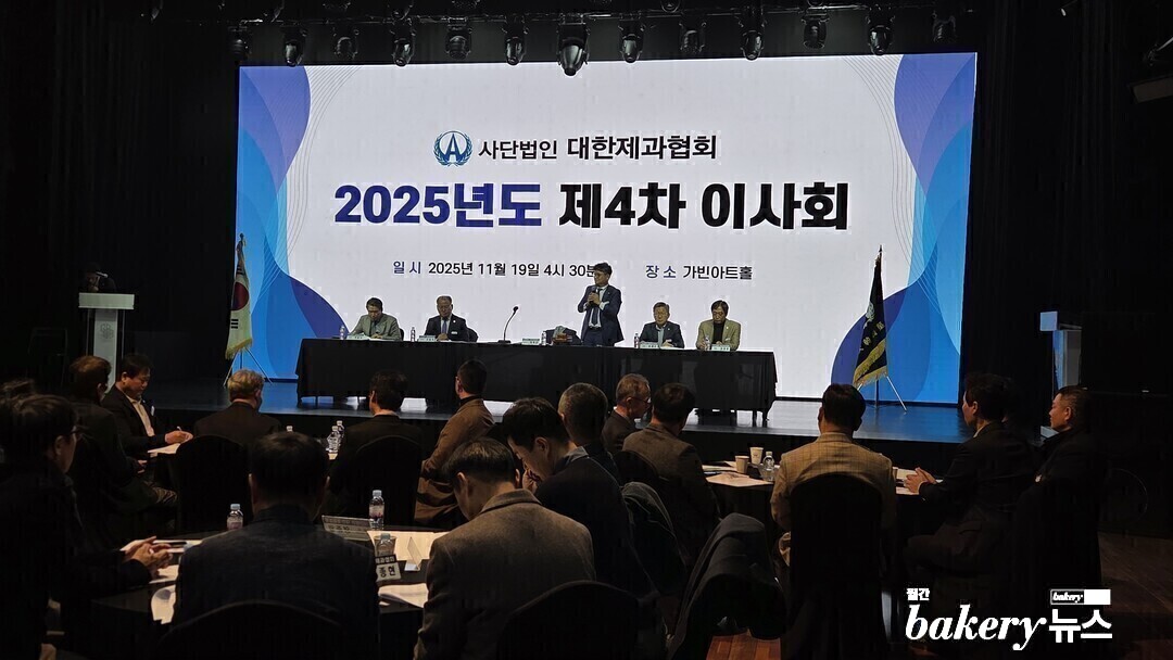 사단법인 대한제과협회가 지난 11월 19일 서울 가빈아트홀에서 ‘2025년 제4차 이사회’를 개최했다. 이날 회의에서는 지난 제3차 이사회 결과보고가 이뤄졌으며, 새롭게 상정된 안건들에 대한 심의가 진행됐다. 이사회에서는 ‘서울 베이커리 페스티벌’ 관련 심의안이 상정돼 원안대로 가결됐다. 이어 최지웅 사무총장이 협회 주요 현안에 대해 종합 보고를 진행했다. 보고 내용에는 △대만 베이커리업계 관계자들의 협회 방문 △우리쌀빵기능경진대회 개최 △지역 베이커리 축제 추진 현황 △서울식품 세미나 진행 상황 △베이커리 산업 안전 및 근로환경 개선을 위한 국회 정책세미나 개최 △나눔세미나 운영 현황 △협회 전산화(디지털화) 작업의 단계별 진행 상황 등이 포함됐다.