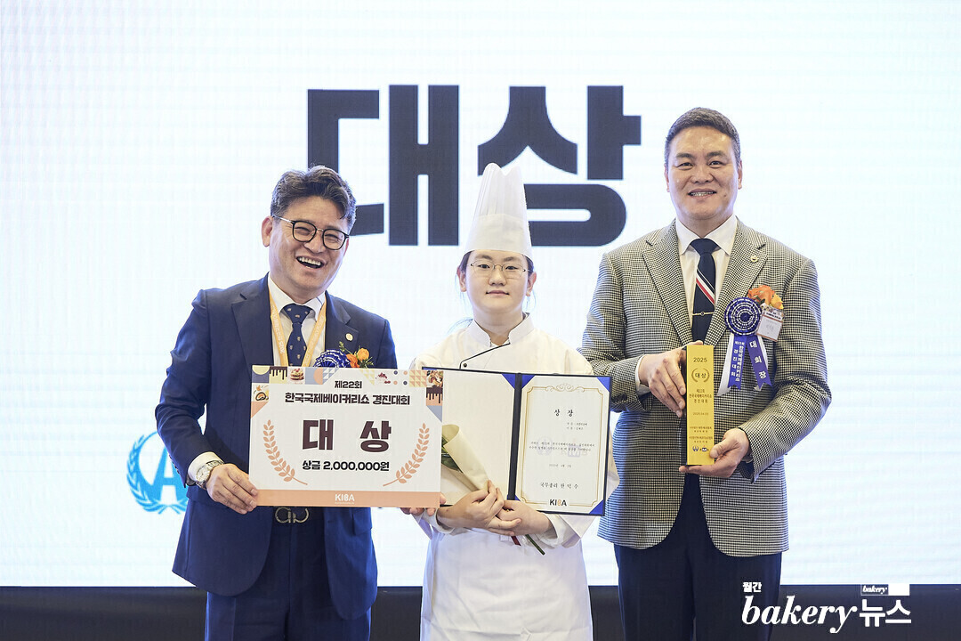 그 어느 때보다 뜨거운 관심이 쏟아졌던 경진대회의 시상식은 베이커리쇼 둘째 날 KIBA 스테이지에서 진행됐다. 이날 대회장인 (사)대한제과협회 마옥천 회장, (사)한국제과기능장협회 이석원 회장, 총괄심사위원장인 최형일 제과 명장, (사)대한제과협회 우원석 수석부회장 등 많은 귀빈이 참석해 자리를 빛냈다. 마옥천 회장은 “대한제과협회가 한국제과기능장협회와 협력하여 함께 개최한 첫 경연대회였습니다. 앞으로 매해 진행되는 경연대회에 더 많은 분이 좋은 제품을 출품하여, K-베이커리가 발전하길 바랍니다”라고 전했다. 뒤이어 이석원 회장은 “이번 경진대회에 참가한 모두가 우승자입니다. 대회 이후에도 계속해서 기술 증진에 힘써 훌륭한 제과인이 되기를 기원합니다”라고 말했다. 이번 제22회 한국국제베이커리쇼 경진대회의 대상은 초콜릿 공예 부문에 참가한 '한국관광대학교' 김채은 선수가 수상했다.