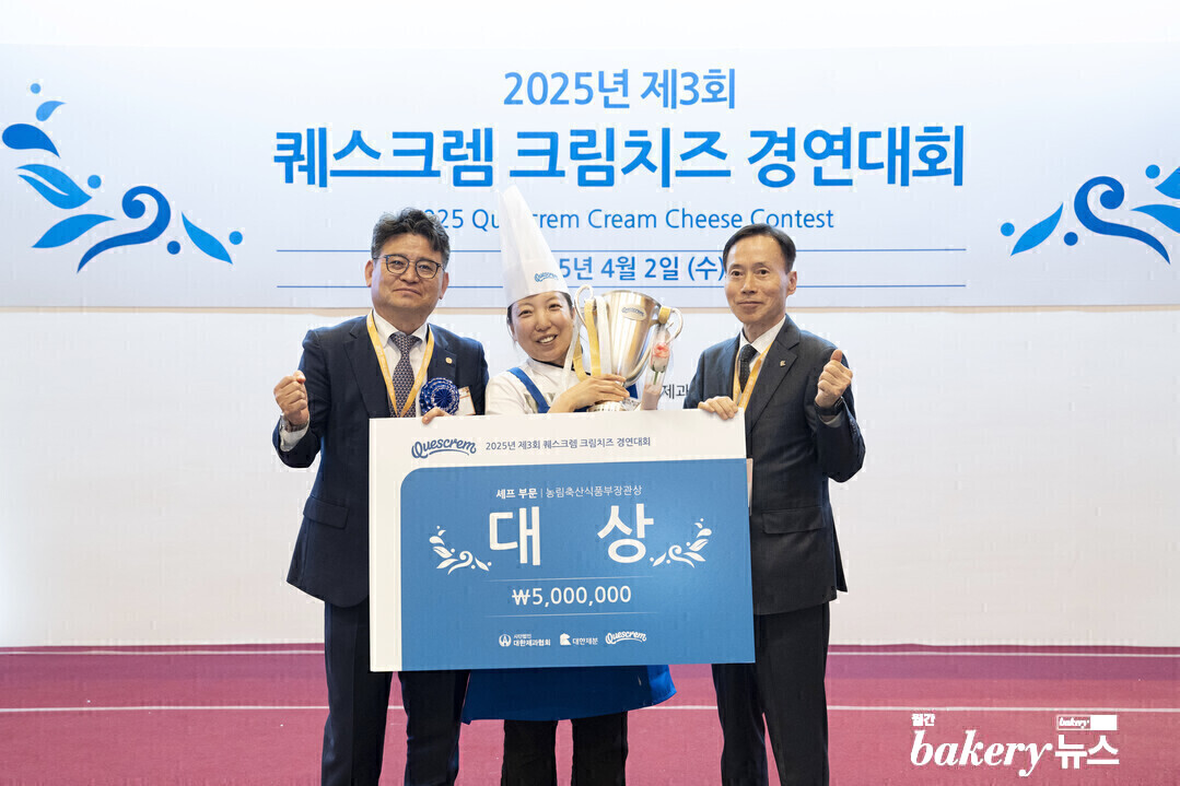 심사위원 회의가 끝난 후 5시부터 시상식이 열리며 대회장 안팎으로 선수들의 가족은 물론 지나가던 방문객까지 모이며 시상식에 열기를 더했다. 시상식에는 마옥천 (사)대한제과협회 회장, 이석원 (사)한국제과기능장협회 회장은 물론 대한제분 송인석 대표, 최무경 심사위원장, 이창민 심사위원장을 비롯한 많은 귀빈들이 참석해 자리를 빛냈다. 귀빈 소개와 심사평 이후 입상자에 대한 시상이 이루어졌다. 주니어 부문은 ‘혜전대학교’ 박민주 선수가 대상을, ‘홍종흔 베이커리’의 김아현 선수가 금상을 수상해 퀘스크렘 스페인 본사로 연수를 떠난다. 셰프 부문은 ‘티쉐의집’ 이경희 선수가 대상을 수상해 500만 원의 상금과 트로피를 받았다. 퀘스크렘 크림치즈의 부드러운 질감과 풍미가 돋보였던 올해 퀘스크렘 경연대회도 높은 관심 속에서 막을 내렸다.