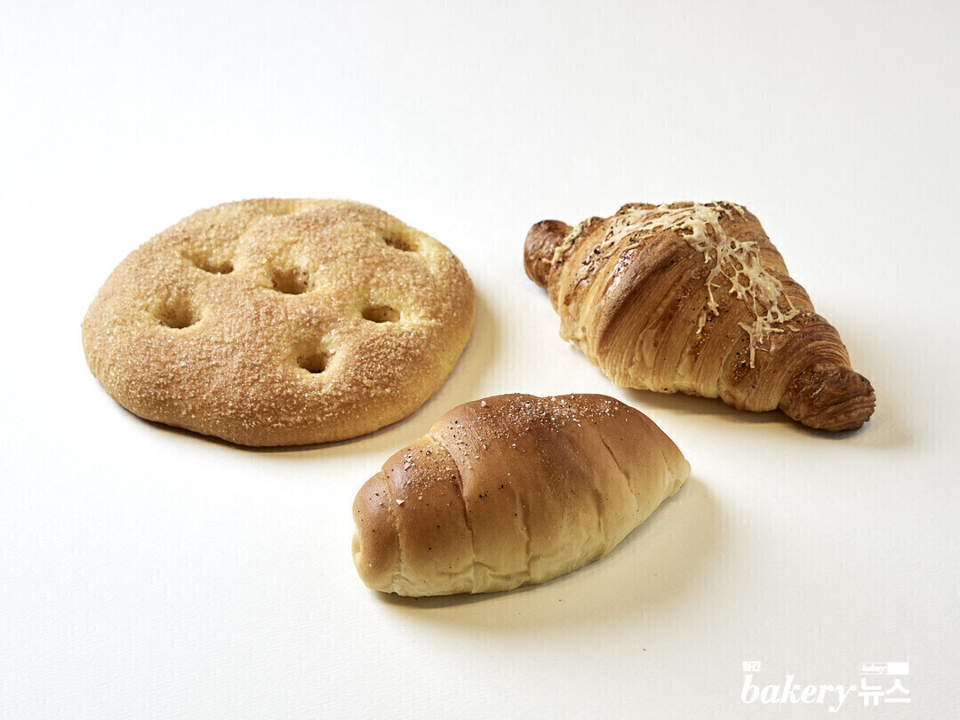 “창작 크루아상은 강원도 대표 특산물인 감자를 사용하여 감자의 구수함과 버터의 고소한 풍미를 동시에 느낄 수 있도록 구성했습니다. 감자를 오븐에 구운 후 잘게 부수어 버터에 볶아 크루아상 반죽에 넣었고 후추, 소금, 그라노파다노 치즈를 시즈닝으로 뿌려 감자 본연의 맛을 살리면서도 짭짤한 감칠맛을 더했습니다. 브레산 쉬크레 브리오슈는 고급스러운 버터 향을 강조하기 위해 피낭시에에서 사용되는 기법인 태운 버터를 적용했습니다. 성형된 반죽에 태운 버터를 올리고 생크림을 듬뿍 바르는 것이 포인트입니다. 마무리로 바닐라 빈을 넣은 갈색 설탕을 뿌려 구웠다. 클래식 소금빵은 시간이 지나도 촉촉함을 유지할 수 있도록 반죽에 탕종과 생크림을 추가했고요. 소금빵 성형에 사용된 버터는 레스큐어 버터의 풍미를 살리기 위해 무염으로 선택했습니다.”